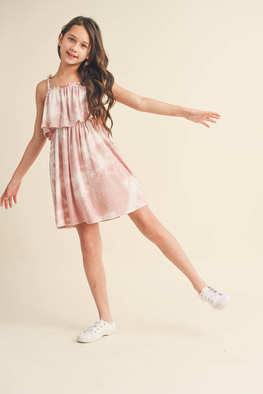 Tween Girls Pink Strappy Ruffle Knit Dress