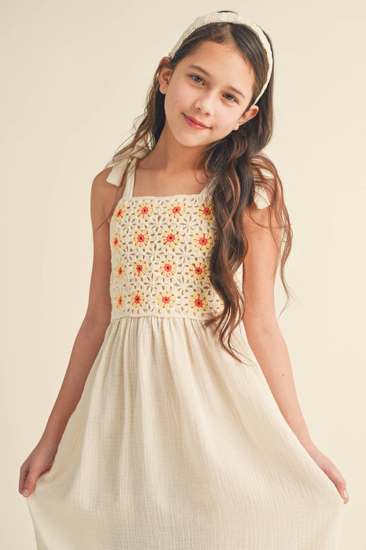 Tween Girls Crochet Floral Midi Dress
