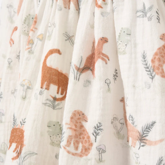 SaleDinosaur Family Ruffle Shoulder Muslin Dress