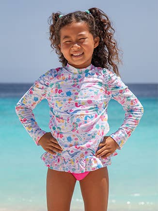 Ruffle Rash Guard Swim Top for Girls: Mermaid Friends